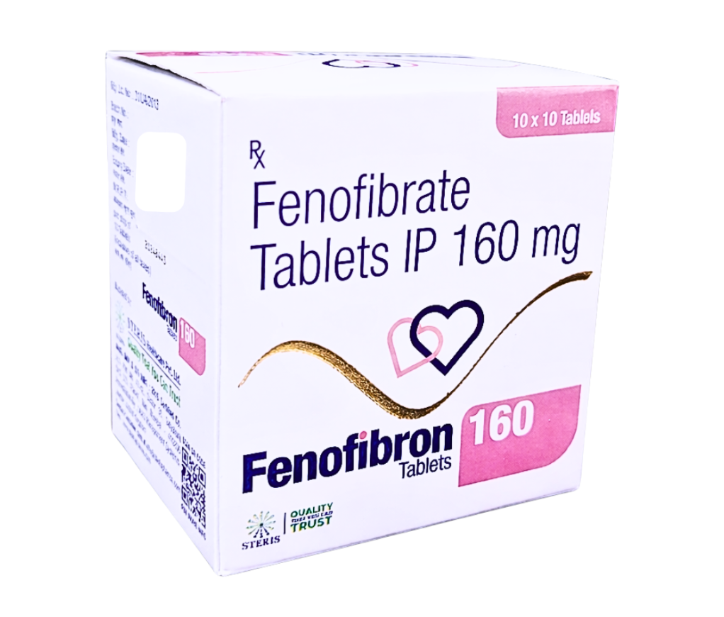 FENOFIBRON 160 Fenofibrate 160mg Tablet by Steris Healthcare Pvt. Ltd. is a highly effective solution for managing high cholesterol and triglyceride levels. It plays a vital role in reducing cardiovascular risks and improving overall heart health when used alongside proper lifestyle modifications.